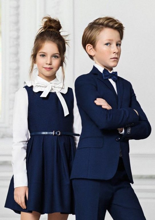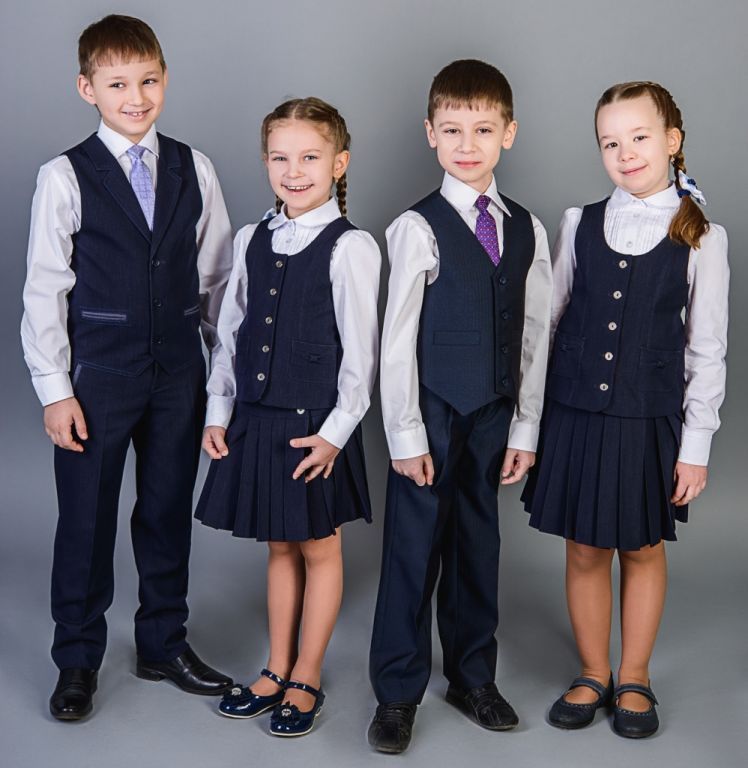 Синий считается одним из наиболее благородных среди всех цветов. Вещи синего цвета добавляют своему обладателю выдержку, сдержанность в эмоциях, терпение. Люди, предпочитающие вещи в синей цветовой палитре, достаточно умны и независимы. Школьная форма синего цвета настраивает ребенка на серьезный лад, успокаивает его физическую активность. Кроме того, вещи синего цвета визуально стройнят фигуру, делают ее более пропорциональной и подтянутой. Это свойство синего всё чаще используется для пошива стильной и красивой школьной формы.