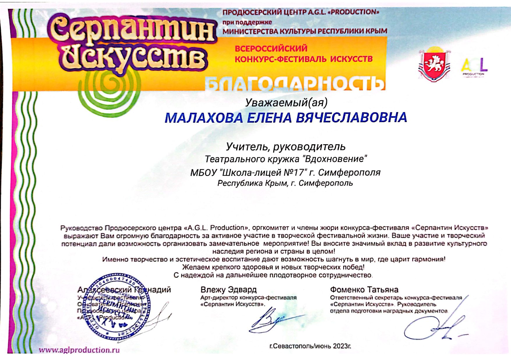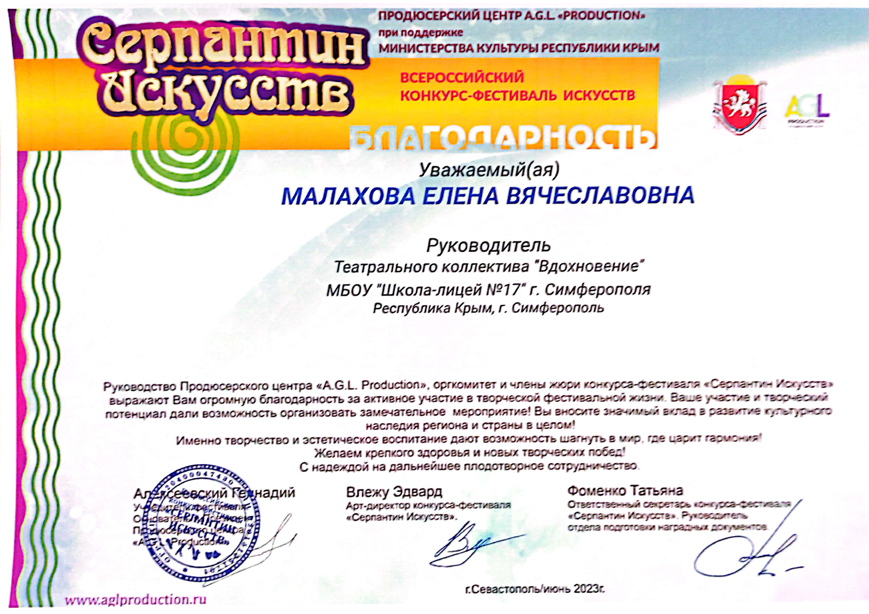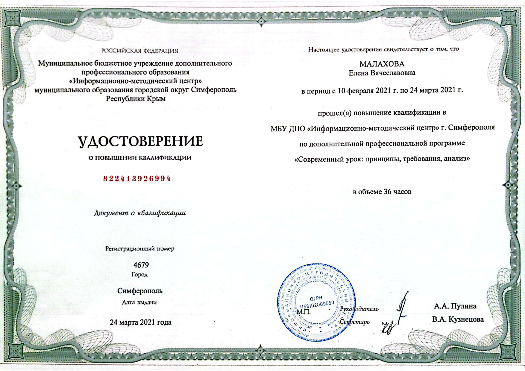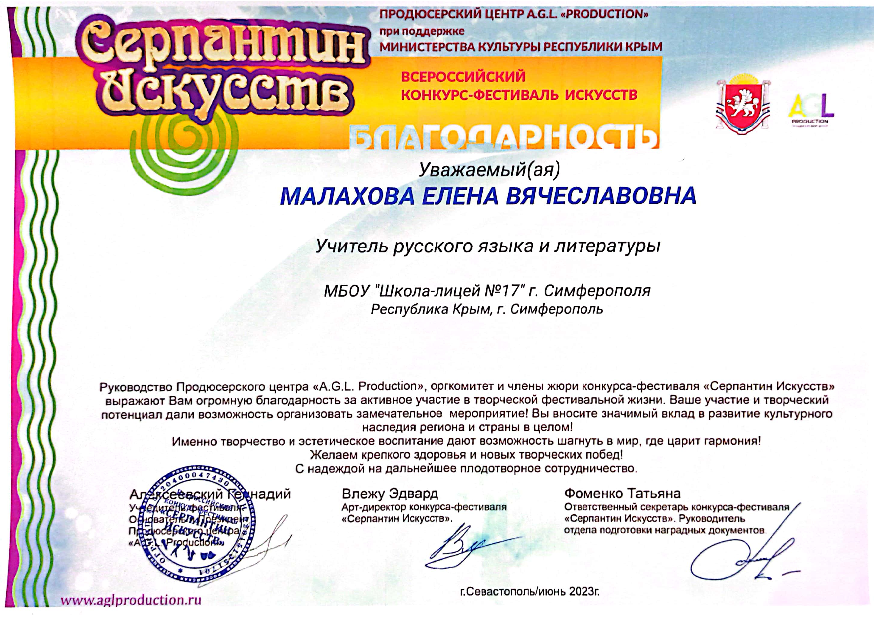 Муниципальное бюджетное общеобразовательное учреждение «Школа-лицей №17 имени А.С. Кузнецова» муниципального образования городской округ Симферополь Республики Крым